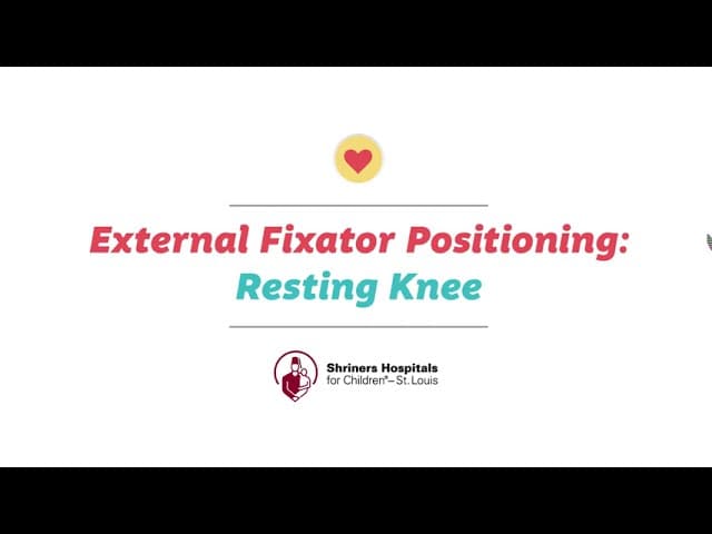 It is important to keep the knee as straight as possible when resting in bed or sitting for long periods of time. This will help prevent excessive tightening behind the knee. Pillows and towel rolls are helpful in achieving the best position. Begin by placing pillows or folded towels under the lower rings of the frame, until the knee is straight and the lower leg is in line with the thigh. A small towel roll may be tucked along the outside of the frame, parallel with the lower leg, should the knee have a tendency to roll outward.
