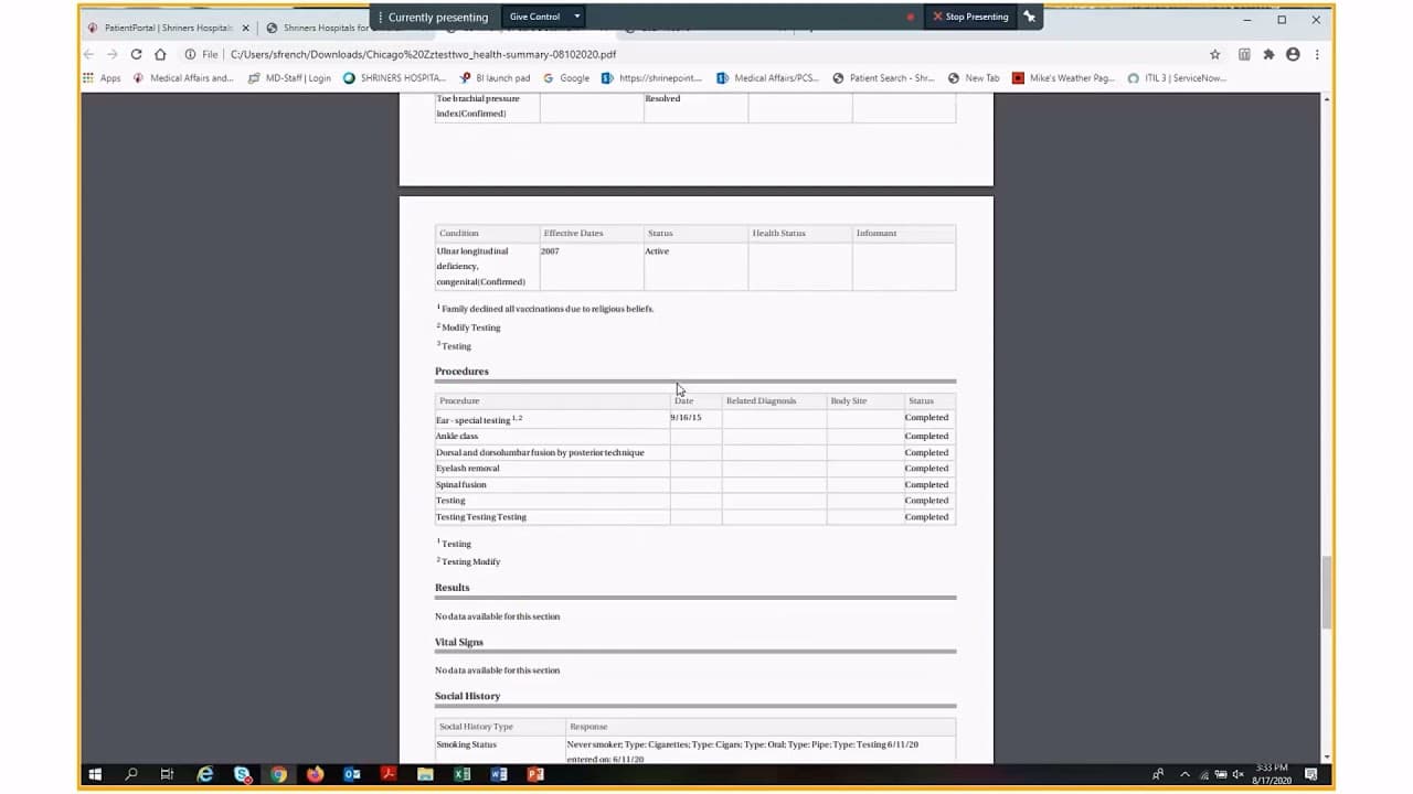 The last section of overview is the provider note section. Once again this includes all the notes created by medical staff during that patient's visit. Again, you can click on the link or download to view that document and also see the date that each document was created. Once the document is open, you'll see information that displays just as it is in the patient's electronic medical record.