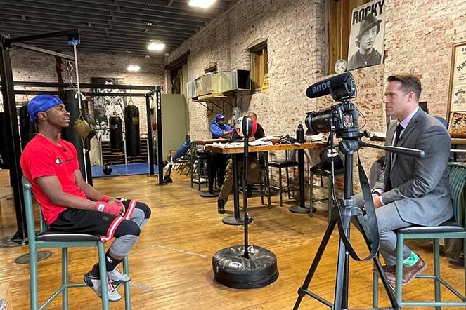 El reportero de KREM 2 News entrevista a Yakobo sobre su tratamiento y recuperación en el Hospital Shriners para Niños Spokane.
