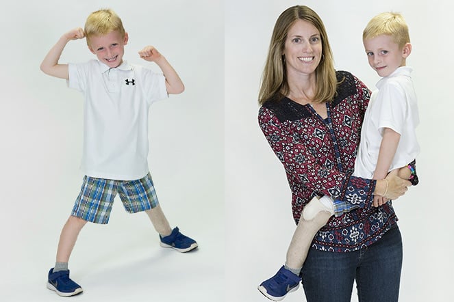 Today MaryKay says having a limb difference is just a small part of who Tommy is. She is quick to say his special leg doesn’t define him. Her son, the youngest of four, is an active 10-year-old who loves to be outside. Tommy wears a prosthetic leg with a rubber foot, which holds up during his active play.