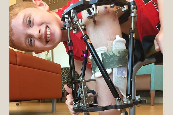 La distancia entre Omaha y St. Louis es grande, pero un especialista cerca de casa les había dicho a los padres de Brody que amputarle la pierna era probablemente la única opción. Eso no les sonó bien. Entonces, vinieron al Show Me State para encontrarse con Eric Gordon, M.D., en el Centro Pediátrico Avanzado de Reconstrucción y Alargamiento de Extremidades en el Hospital Shriners para Niños St. Louis.