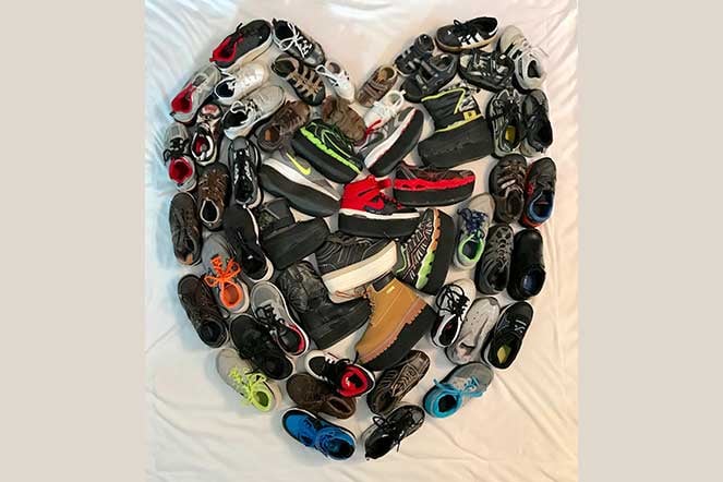 Los zapatos viejos crean un corazón que muestra el crecimiento de Brody y las adaptaciones de elevación.