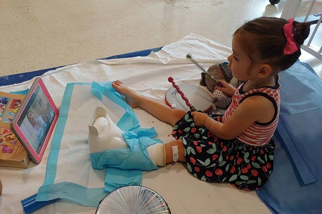 Las especialistas en la primera infancia, Hilary y Brooke, fueron particularmente importantes para Scarlett, especialmente durante su estadía como paciente hospitalizada. A través de instrumentos musicales y la terapia recreativa, la ayudaron a calmarse. Jenny encontró una muñeca en silla de ruedas con un pie enyesado, lo que también ayudó a Scarlett a procesar lo que estaba experimentando.