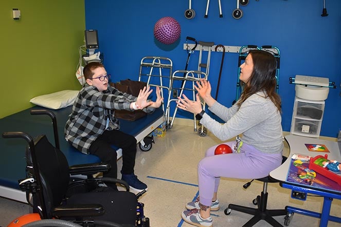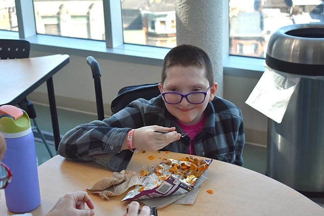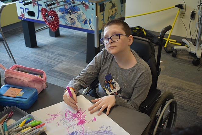Durante los últimos tres años, Jeffrey ha sido atendido por Richard Goldberg, DO, y la Dra. Bethany Lipa, quienes le han brindado medicina física y rehabilitación. Además, el Dr. Sean Waldron, MD, le realizó una cirugía de triple artrodesis bilateral de pies para que pueda caminar de forma independiente. Después de la cirugía, pasó seis semanas enyesado y ahora usa sus característicos aparatos ortopédicos morados de POPS.