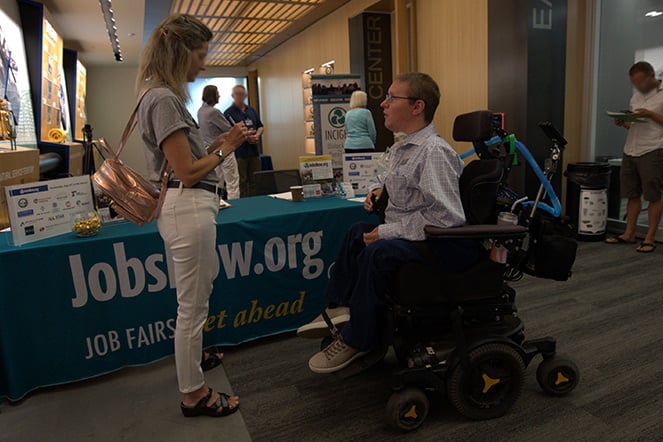 Scott trabaja en una feria de empleo organizada por Incight.