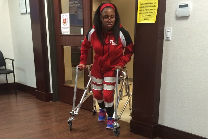 El plan de tratamiento de Breanna incluyó cirugía de alargamiento de los isquiotibiales, placas de tobillo para mejorar la estabilidad y movimiento, fisioterapia y ergoterapia, y aparatos ortopédicos. Breanna recuerda a los médicos que estuvieron a cargo de su atención, incluido el cirujano ortopédico, William Phillips, MD, quien puso manos a la obra para que Breanna estuviera cómoda y progresara bien. Él la visitaba seguido en la habitación del hospital y supervisaba su recuperación gracias al centro de análisis de movimiento, un espacio donde se registraron los patrones de la marcha de Breanna para poder afinar su tratamiento.