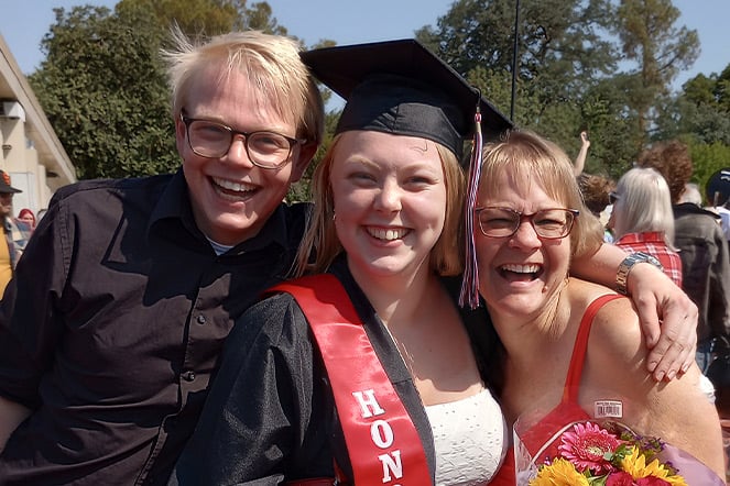 Con la tutoría de Darvin, asistirá al American River College y luego estudiará biología humana en la Universidad de California en Davis. En junio pasado, se graduó de la escuela secundaria con honores. Ahora, está completando su período de atención en Shriners Children’s.