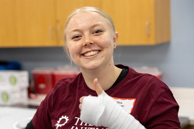El cirujano ortopédico Brian Haus, MD, realizó la delicada cirugía de Amelia, en la que se le reparó el labrum desgarrado y se alargó el tendón. Después de la cirugía, la enfermera, Megan, permaneció a su lado para asegurarse de que se recuperara. Además, el enfermero de hospitalización, Wesley, se aseguró de que siempre tuviera una sonrisa en el rostro durante la recuperación.