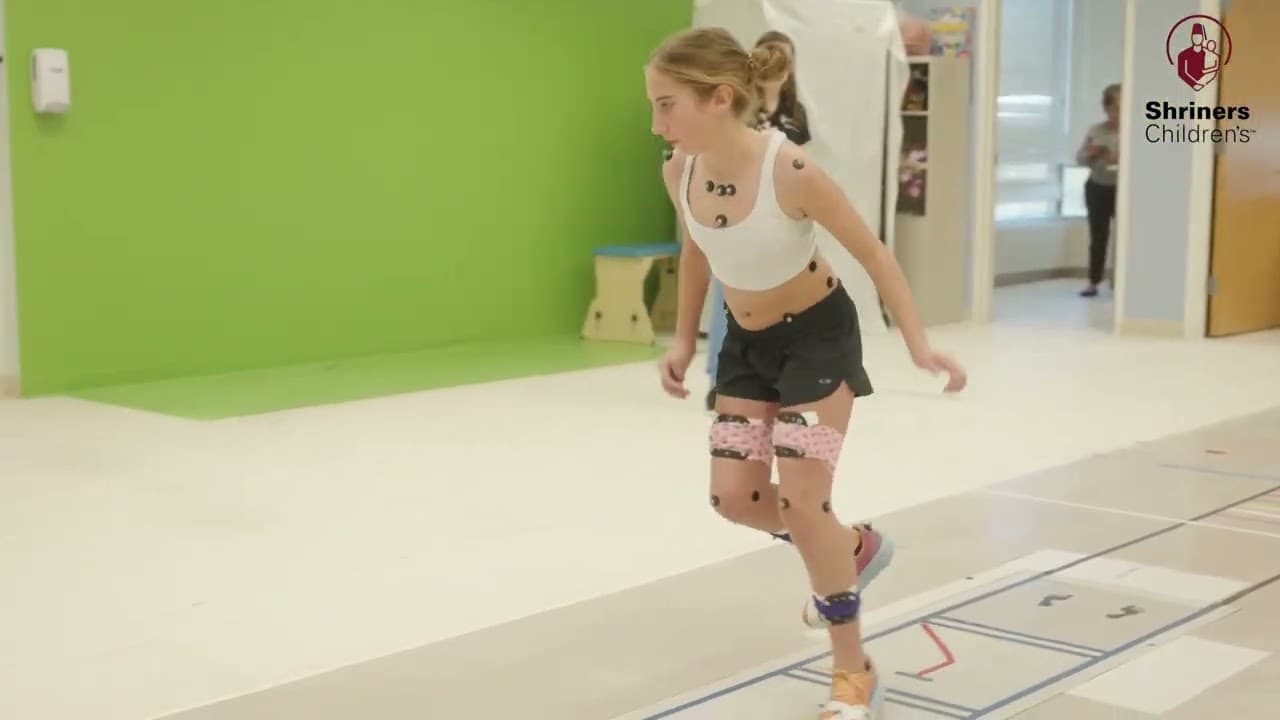 Aquí en Shriners, también lo utilizamos para la medicina deportiva. Hacemos que el niño realice movimientos específicos de cada deporte, como saltar, cambiar de dirección, desacelerar, acelerar, cosas que normalmente harían en el deporte y que les implica un riesgo de lesión. Y así, analizamos si el niño está listos para practicar deportes, si está listo para volver a practicar deportes después de una lesión y qué puede hacer para preparar el cuerpo para hacer esas cosas.