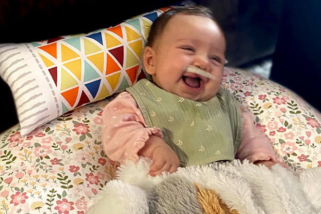« Nous avons décidé d’amener Amelia à l’Hôpital Shriners pour enfants de Boston parce que leur personnel semblait très bien informé sur son diagnostic, et nous savions qu’ils seraient le bon endroit pour nous », a déclaré Miriam. Amelia est devenue une patiente de l’Hôpital Shriners pour enfants de Boston peu après sa naissance. La Dre Kavitha L. Ranganathan, codirectrice du centre des fentes et de soins cranio-faciaux, a pratiqué une chirurgie des lèvres et du nez sur Amelia alors qu’elle n’avait que 3 mois.