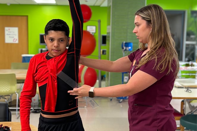 Victor a passé plus d’un mois en tant que patient hospitalisé à l’Hôpital Shriners pour enfants du Texas, subissant des chirurgies, recevant des soins de plaies et faisant de la physiothérapie et de l’ergothérapie intensives afin de retrouver sa mobilité. Tout au long de son séjour à l’hôpital, Victor est resté concentré et optimiste. Il a noué des liens avec d’autres patients et s’est fait de nouveaux amis. La qualité élevée des soins que Victor a reçus du Dr Jong Lee a laissé une impression durable sur lui et sur sa famille.