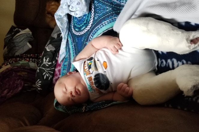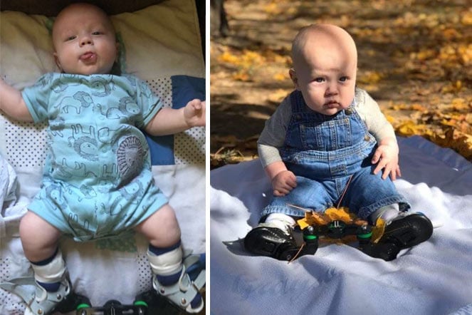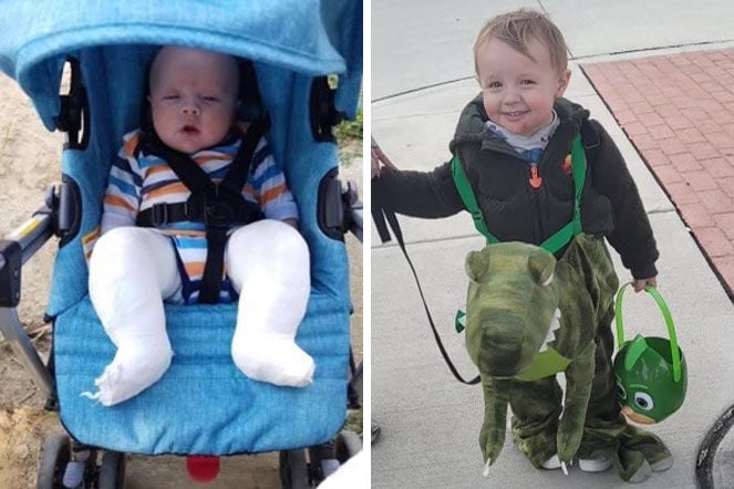 Grayson est né avec un pied bot bilatéral. Sa mère a immédiatement cherché des soins pour lui. Aujourd'hui, Grayson tourne en rond autour d'elle.