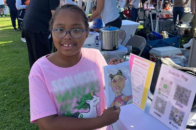 Elle n’a pas permis à sa scoliose de faire obstacle à ses objectifs, à ses rêves et à sa passion. Motivée à sensibiliser les gens à propos de son état, Isabella a créé un autoportrait, qu’elle a transformé en cartes de correspondance et en aimants pour le salon de l’entrepreneuriat de son école en octobre, recueillant ainsi 450 $ pour les Hôpitaux Shriners pour enfants. Pour transmettre haut et fort son message, elle a pris ses crayons de couleur et elle s’est mise à dessiner.