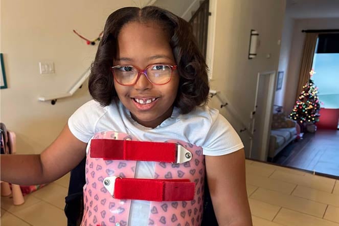 En décembre 2021, Isabella et sa famille ont commencé leur parcours avec les Hôpitaux Shriners pour enfants. L’introduction a eu lieu lorsque d’autres familles, dont les enfants souffrent également de scoliose, ont partagé leurs expériences positives au centre médical avec la famille d’Isabella. Les recommandations ont amené Isabella au Dr Robert Cho, médecin-chef, qui continue d’être son médecin. Elle a expliqué que le Dr Cho et l’orthésiste prothésiste certifiée Elizabeth Gee sont rigolos et la font rire.