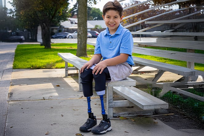 Eight-year-old Micah is an active, energetic double amputee who shows that with support and determination, anything is possible.