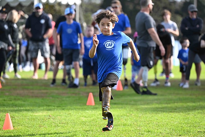 A significant turning point came when he was awarded running blades from the Challenged Athletes Foundation (CAF). “They just made him a different little guy,” Eloisa said. “He realized he can run and balance better, so he’s been very active. When he can, he plays baseball, soccer and tennis.”