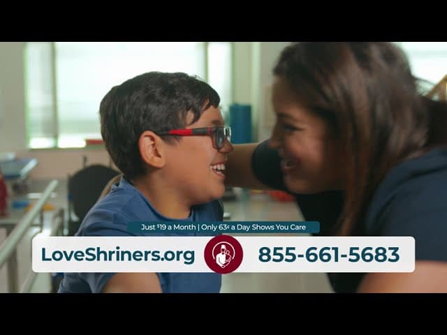 [Just $19 a month hows You Care; LoveShriners.org; Shriners Children's Logo, 855-661-5683]